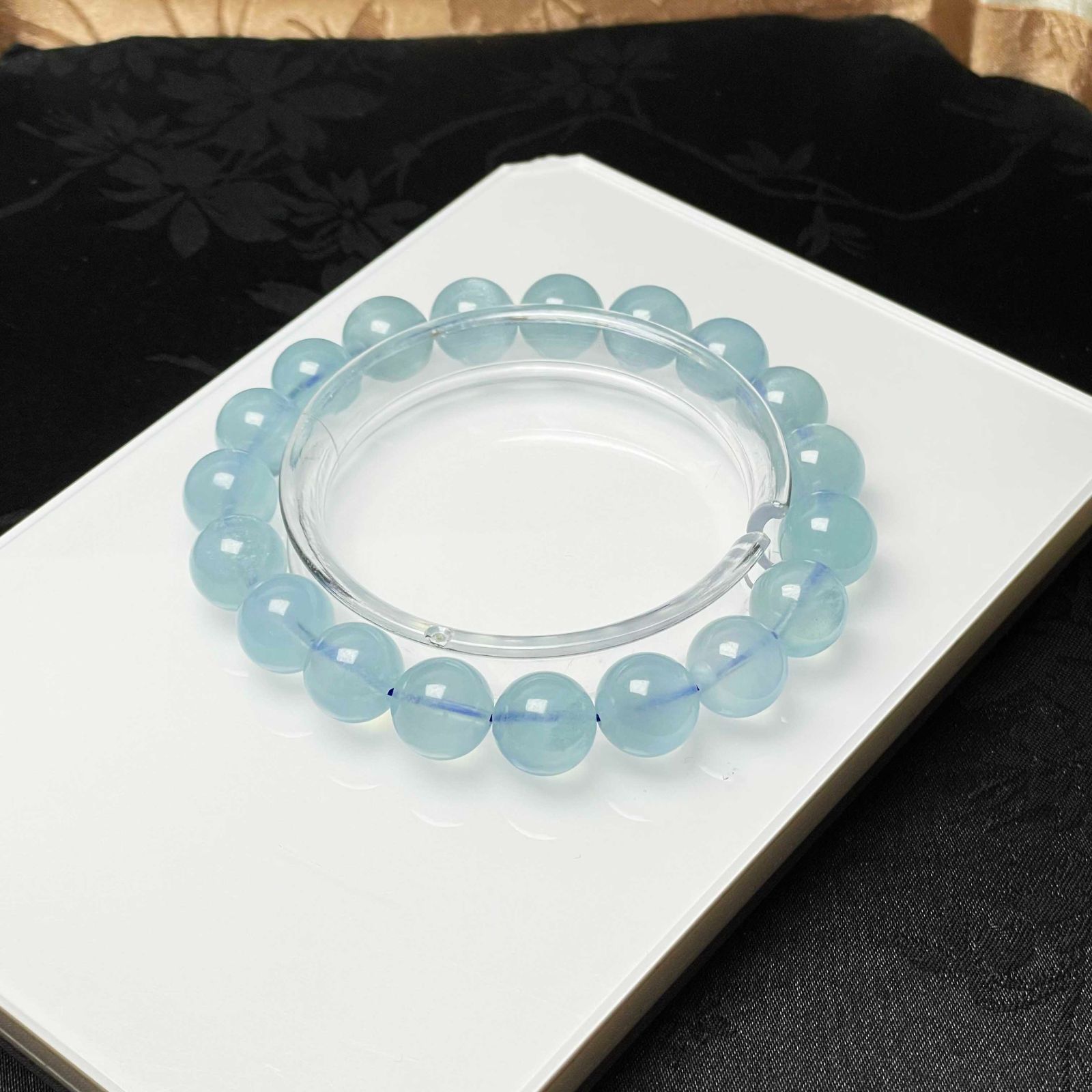 EU製 ブルーアクアマリン パワーストーン ブレスレット 天然石 原石 お守り プレゼント 11.2-11.6 mm ZZ 1653