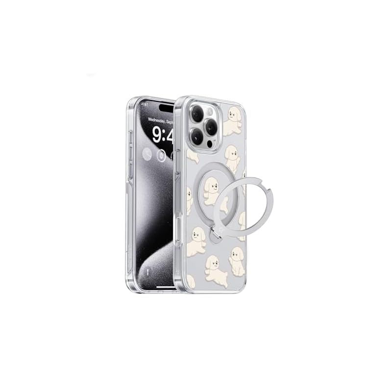 商品名:【最新トレンド・360°回転スタンド】CASEKOO iPhone 15 Pro 用ケース クリア 比熊犬 ふわふわ 米軍MIL規格 フィット感 MagSafe対応 最大15W急速充電対応 横縦両立 角度自在 超強磁力 耐衝撃 高耐久性 ラップホール付き 透明
