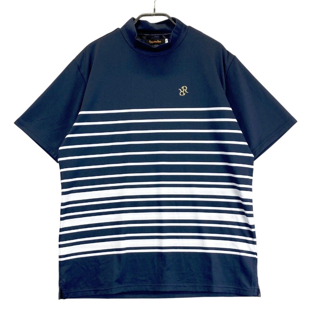 サイズ L レザレクション ハイネック 半袖Tシャツ ボーダー柄 ネイビー系 ゴルフウェア メンズ ストスト