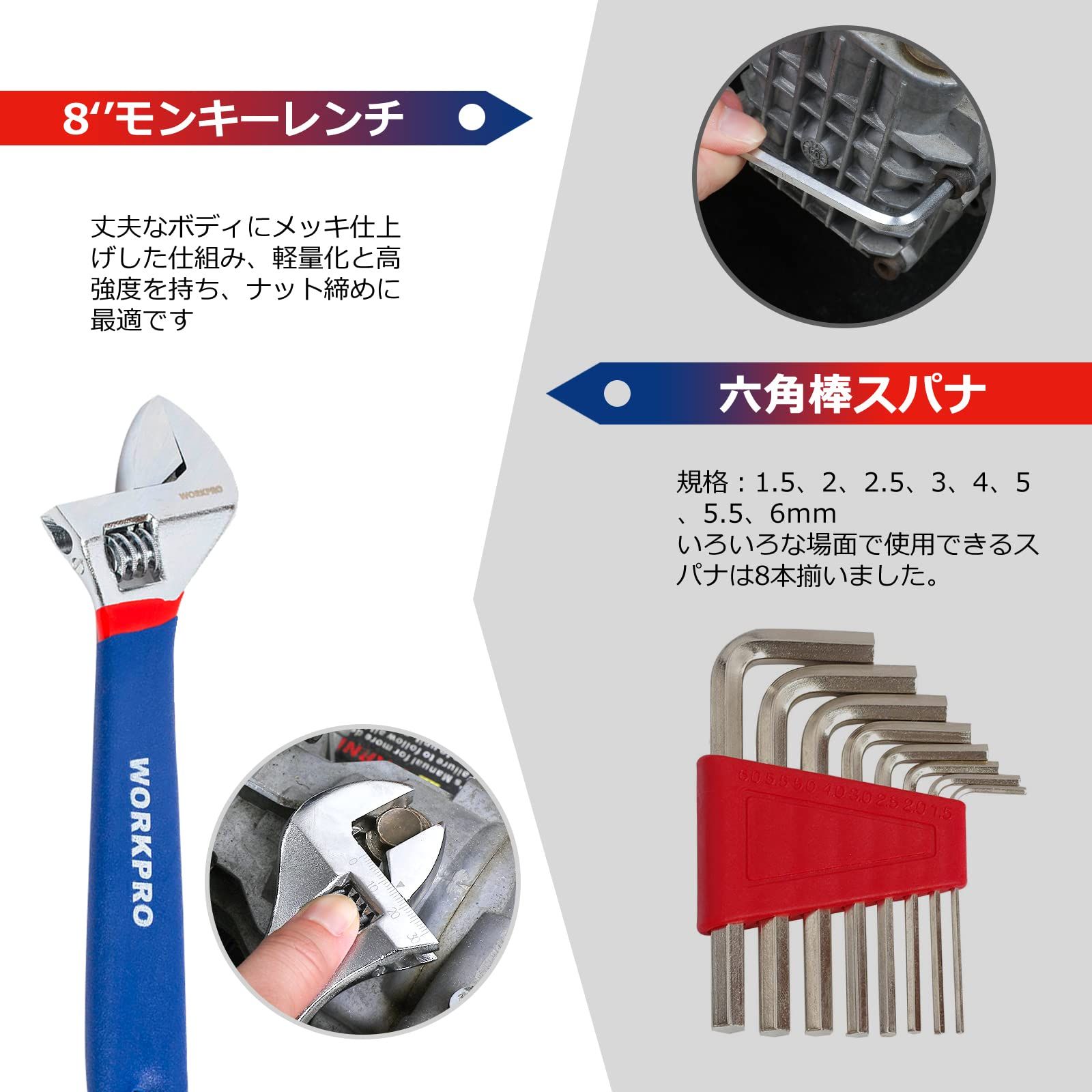 WORKPRO ホームツールセット 工具セット ガレージツールセット 日常ツールキット 日曜大工 家庭修理 家具の組み立て 住まいのメンテナンス用 収納バッグ付き