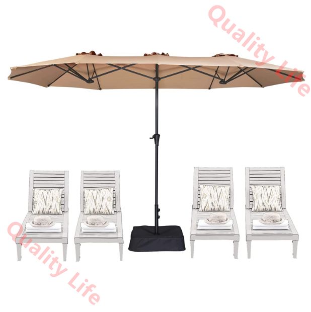 ガーデンパラソル 大型 幅460 cm×奥行260 cm UVカット 撥水加工 クランク開閉付き サンドバッグベース付き 屋外パラソル モダン おしゃれ 折りたたみ 3トップ 両面パラソル 汎用 日陰 簡単設置 カフェテラス オープンテラス キャンプ 夜カフェ
