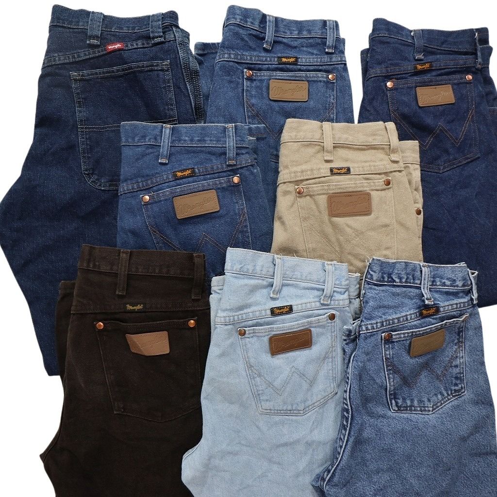 新品卸 まとめ売り Wrangler ラングラー パンツ 8枚セット (メンズ 32 /33 /34 ) カラーデニム フェード ワイド 革パッチ 新品 新品 NC1353