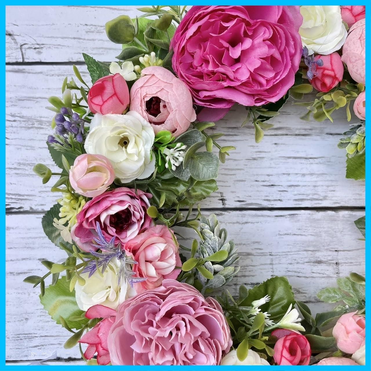 商品 Lulu s ルルズ ピンクローズのフラワーリース アーティフィシャルフラワー ナチュラルリース サイズ 直径約26 cm×奥行約8 cm s-1741