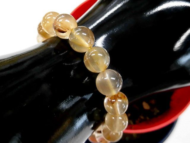 天然石 ラビットヘアールチルクォーツ9.5~9.9 mm玉ブレスレット 内周18.3 cm