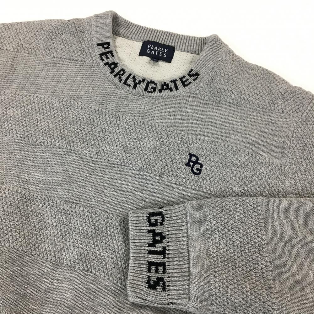 超 パーリーゲイツ セーター グレー ボーダー編み 裏地付 ウール混 ニット メンズ 5 L ゴルフウェア PEARLY GATES