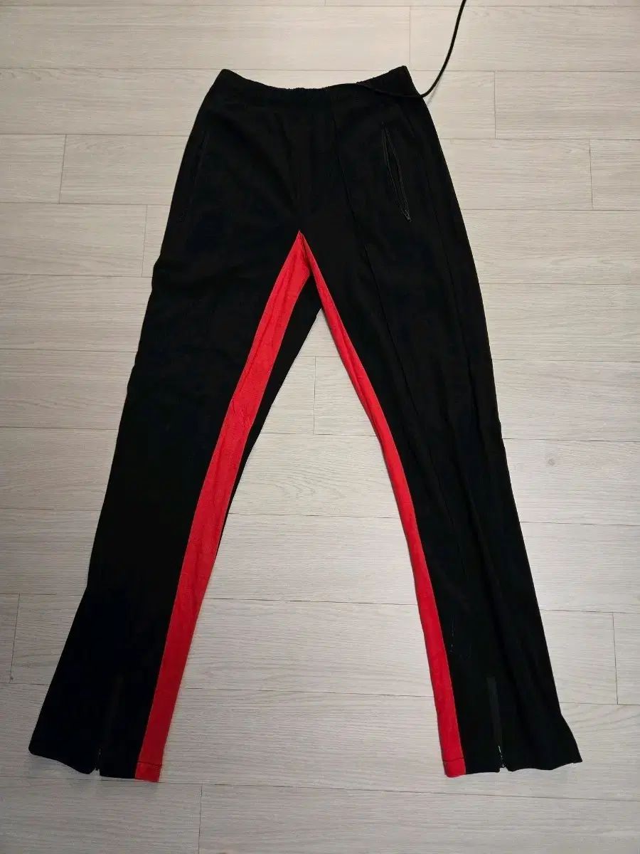 ドリップ黒色トラックパンツです。横LINEに赤色でPOINTが入っています。裾にはジッパディテールがあります。別途コメントなければすぐ安全決済お願いします!