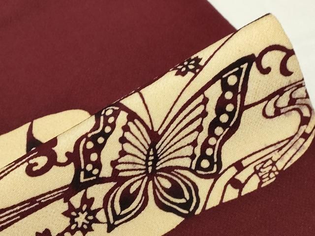 平和屋着物 九寸名古屋帯 草木手染 流水花蝶文 鬼しぼ縮緬 正絹 dy