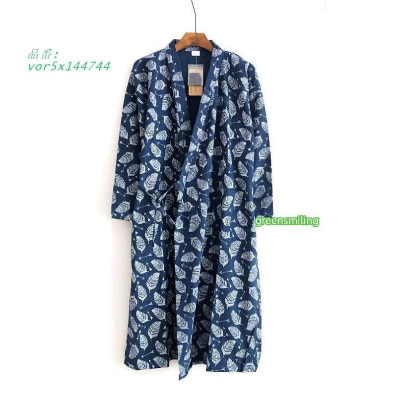 綿 ルームウェア パジャマ 寝巻き 男女兼用 ガーゼ ネイビー ガウン お風呂上がり 葉柄 メンズ バスローブ ホワイト レディース 浴衣 vor 5 x 144744