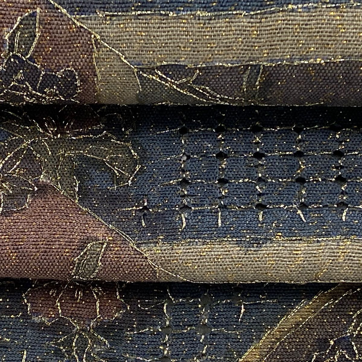 袋帯 草花 鳥 金糸 刺繍 灰茶 全通 正絹