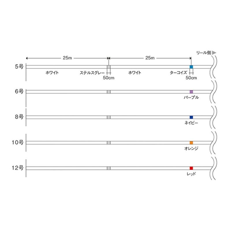 ●カラー:ホワイト(ホワイトベース25m毎に、50cm幅でステルスグレー、各号数のカラーのマーキングを交互に繰り返し。)