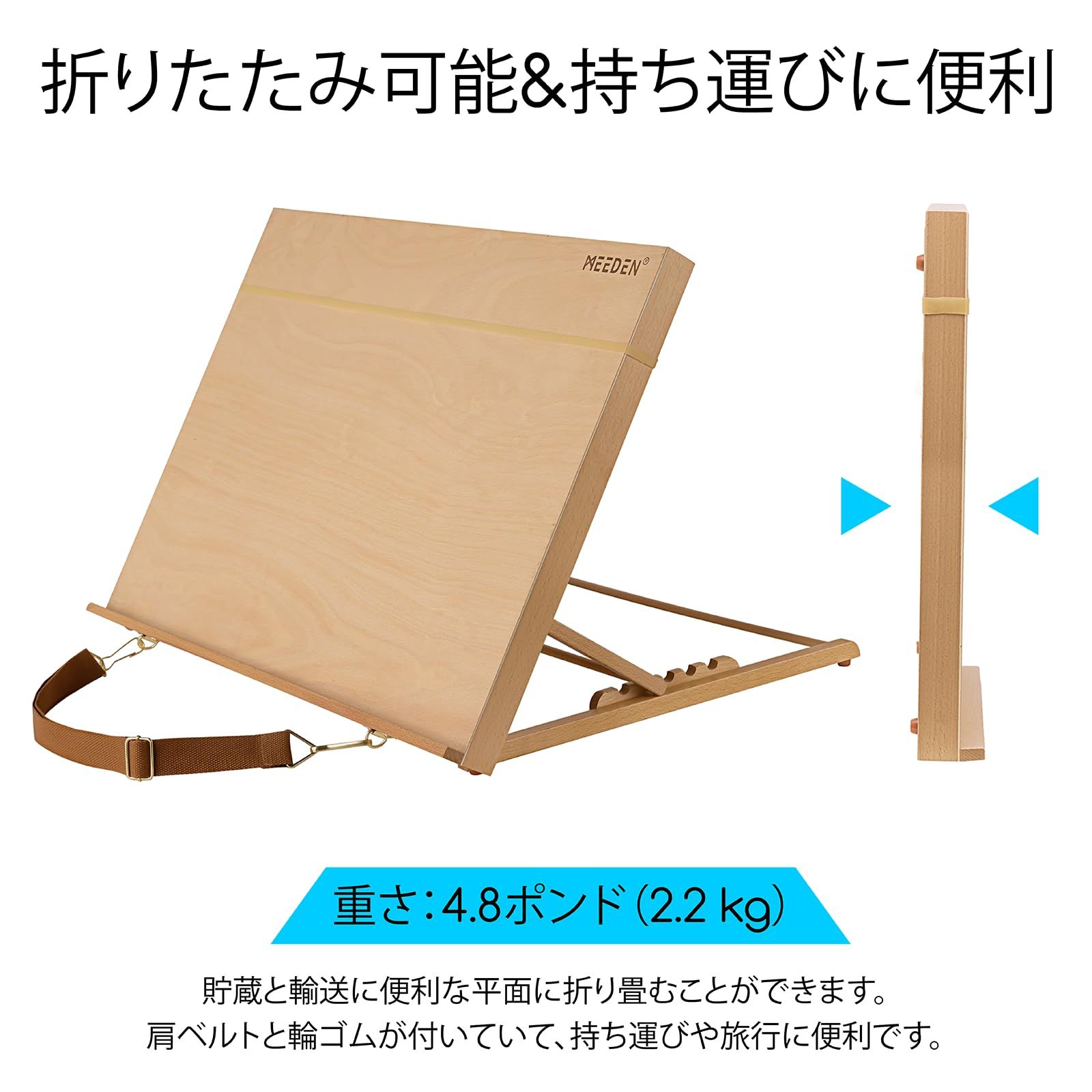 MEEDEN 卓上イーゼル ブナ木製 A2 描画ツール 肩ベルト付き 画板立て 角度調節 折りたたみ式 携帯便利 A2スケッチボード デスクイーゼル スケッチ板 製図ボード 絵画用 写生用 デッサン用 スケッチ用 油絵、読み書き、学習、作業に最適(65.8×48.9cm)