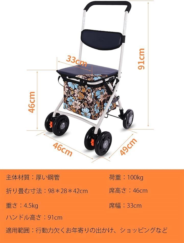 UGT 高齢者向けショッピングカート 高齢者用カー シルバーカー 折りたたみ 002 Bブレーキ制動