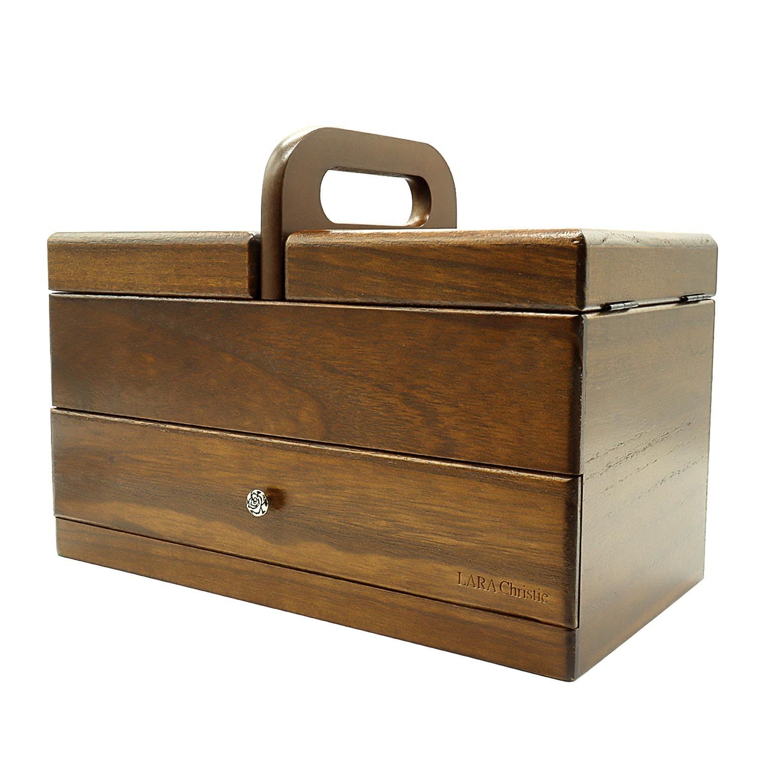 ララクリスティー 裁縫箱 木製 天然木 桐材 ソーイングボックス 収納 2段 大容量 小物 lh 108 0004