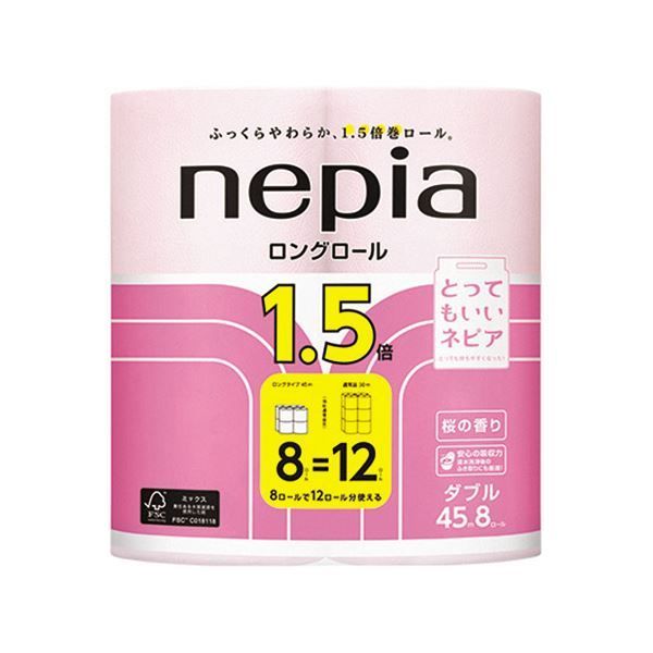 王子ネピア ネピア ロングロール ダブル芯あり 45 m 桜 64ロール 8ロール