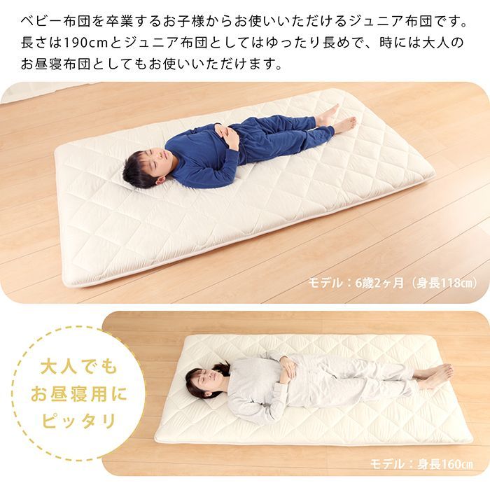標準的なジュニアサイズよりも長めな190cmで、ゆったり眠れる大きさです。