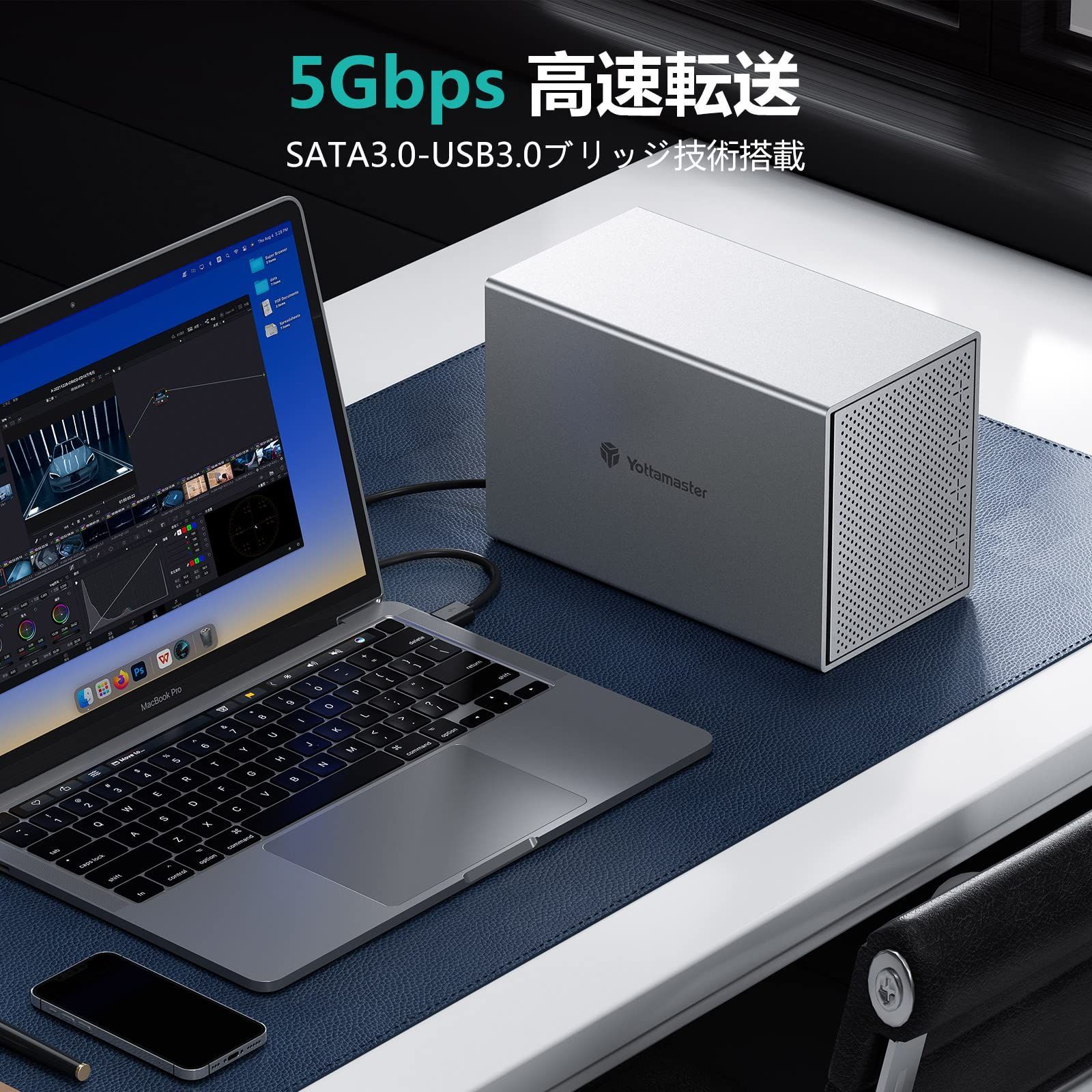 RAID機能 Yottamaster 5 Bay HDDケース 3.5インチ USB 3.0 Type-B接続 SATAⅢ 外付けハードディスクケース RAIDケース アルミ合金製 5台搭載 ハードドライブエンクロージャ シルバー PS 500