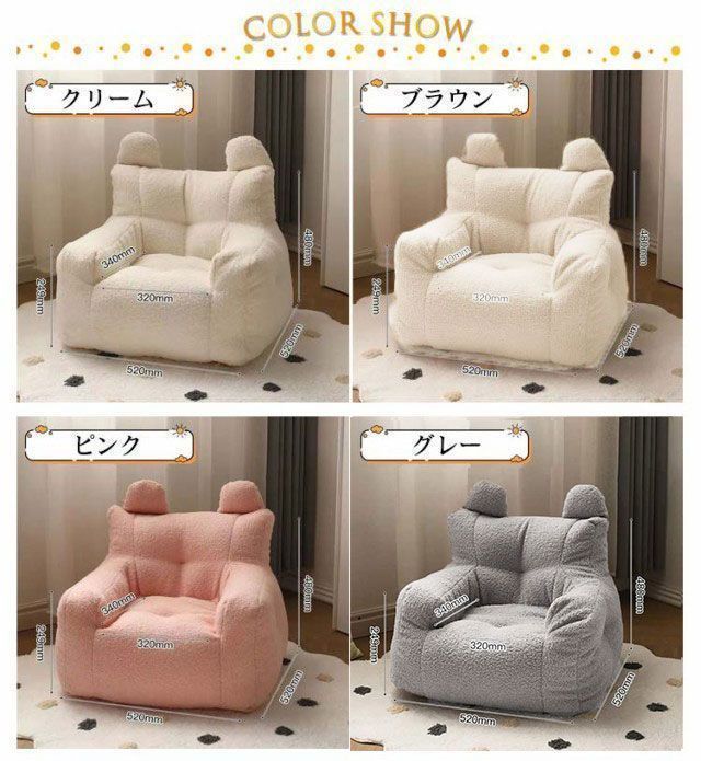 ビーズソファー 座椅子 子供ソファ キッズソファ 一人掛け ビーズクッション 椅子 耳付き ふわふわ 子供用 ミニソファ 背