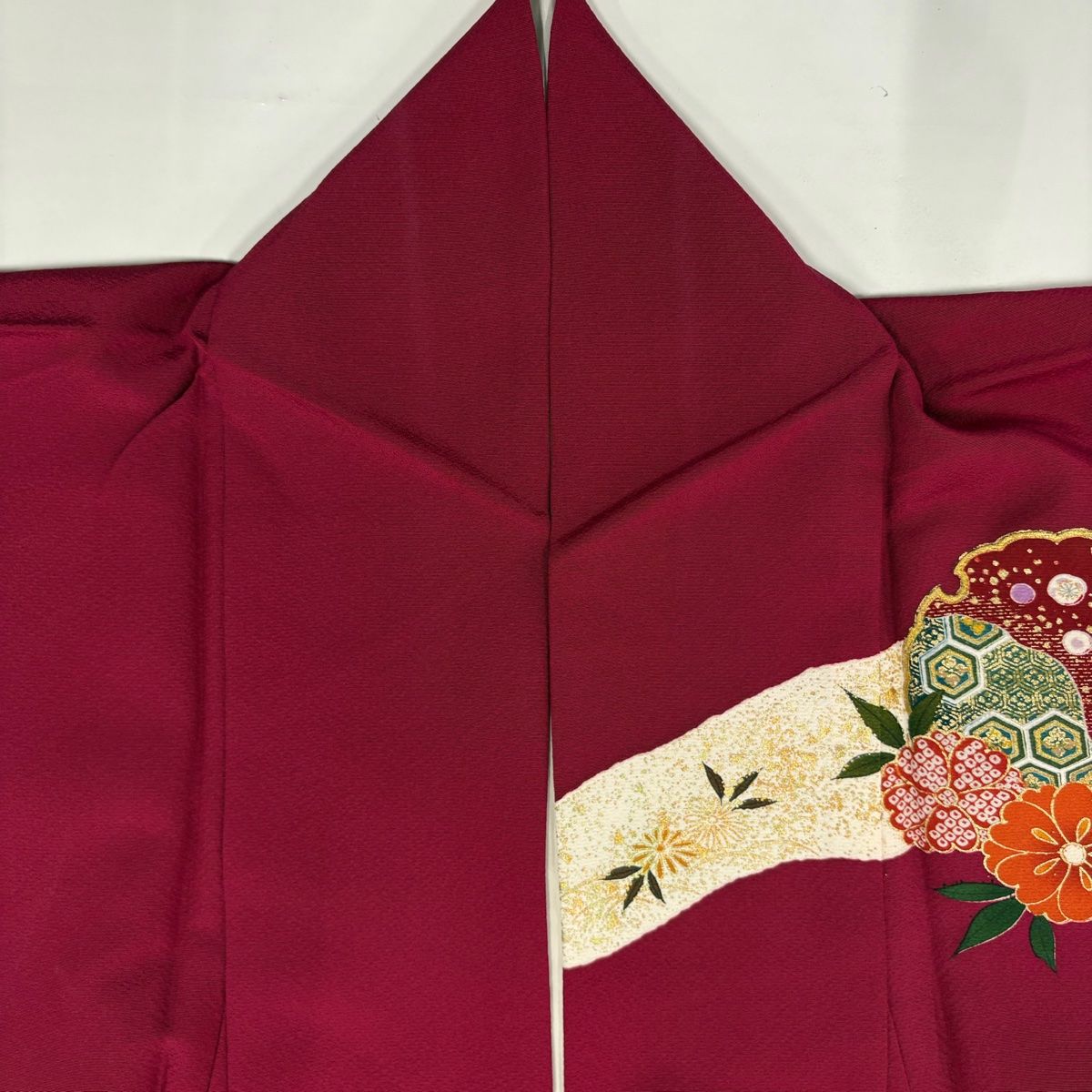 振袖 身丈159 cm 裄丈64 M 袷 華文 草花 金糸 金彩 えんじ色 正絹 秀品