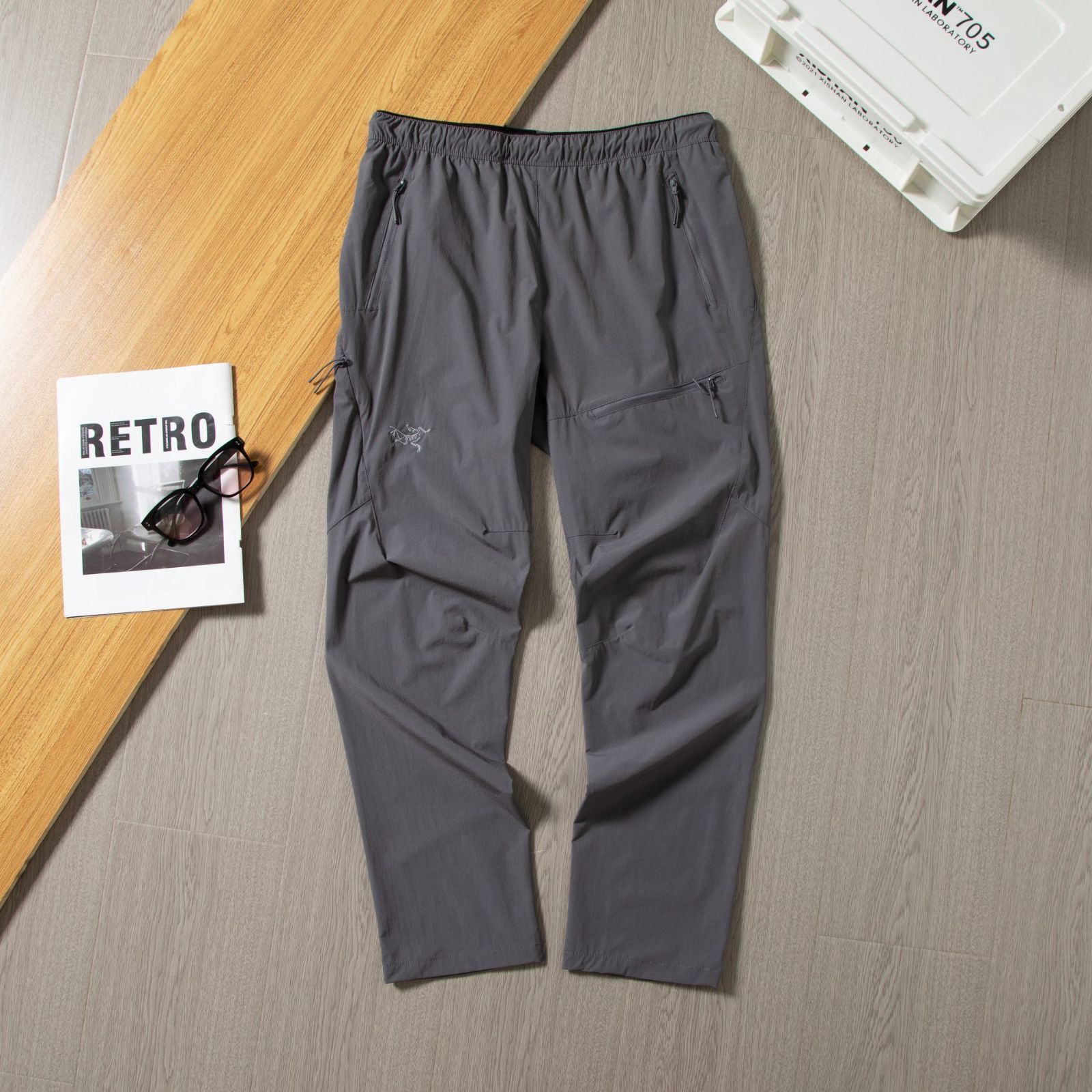 始祖鳥 アークテリックス の長パンツ パッチワークで多ポケットのレジャー刺繍入り長パンツ