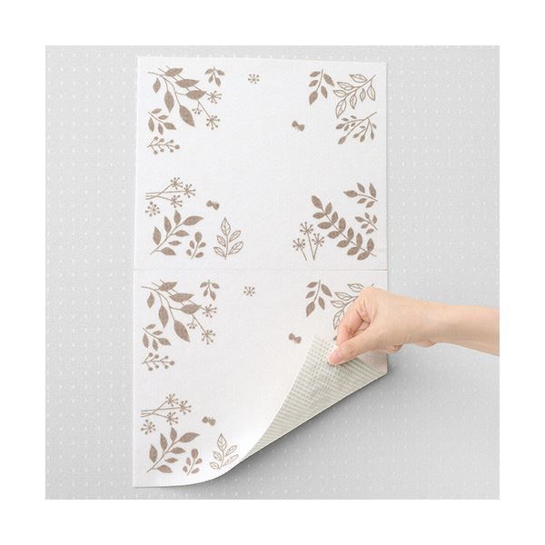 ●洗面所のタオル掛け近くの壁に貼って汚れを防ぐシート。リーフ柄、2枚入です。