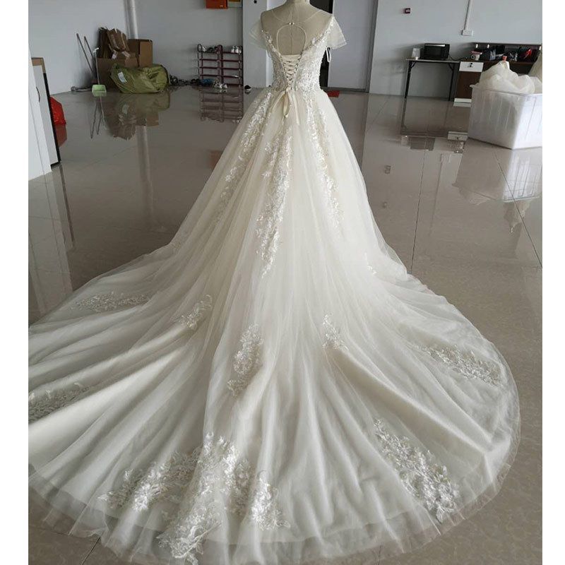 お支払い後に、裾がフラットなタイプか、またはトレーン付きの商品が必要かをお知らせください。