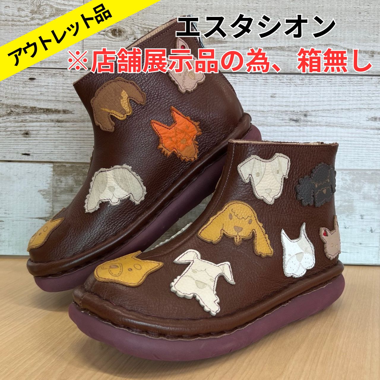 Estacion エスタシオン ワンちゃんモチーフ 本革 ショートブーツ Lサイズ
