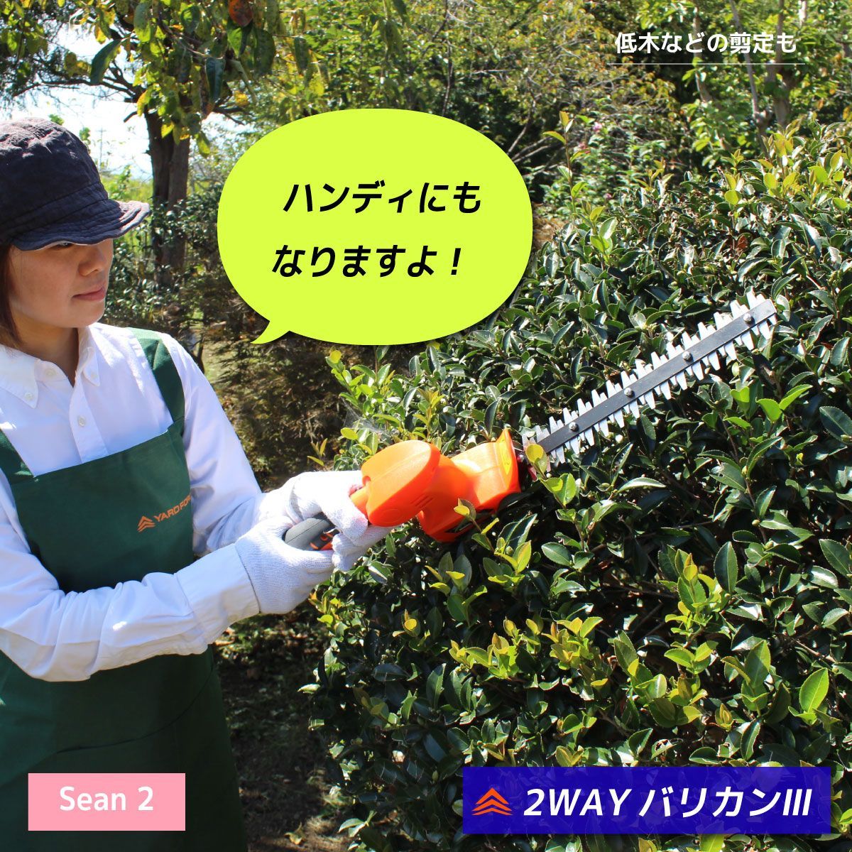 ヘッドの交換で剪定ヘッジトリマーと、高枝電動のこぎりとしてお使いいただけます。