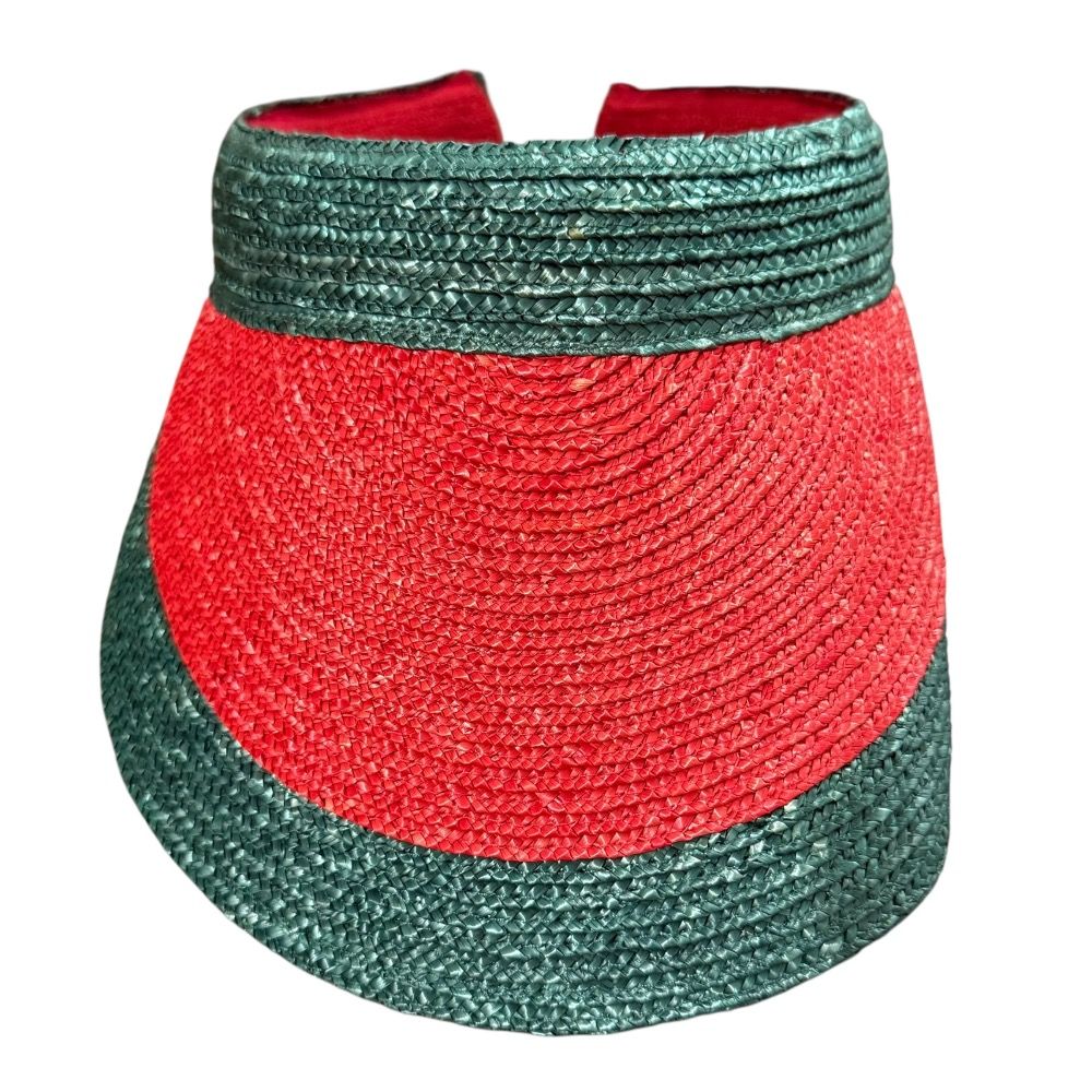 GUCCI グッチ ラフィア シェリーライン サンバイザー レッド×グリーン レディース 古着