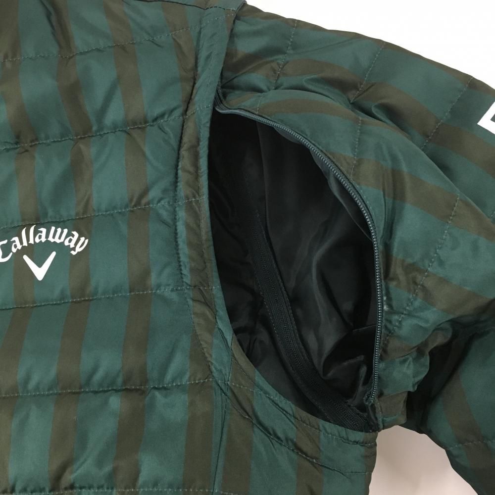 キャロウェイ 2 WAYダウンジャケット グリーン×カーキ ストライプ 襟裏フリース 軽量 袖着脱可 メンズ LL ゴルフウェア Callaway