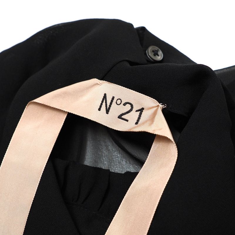 ■美品■N°21 ヌメロ ヴェントゥーノ ワンピース 長袖 シアーフリル ドレス シフォン ワンピース ボリュームスリーブ ティアードフリル ブランド新品【新品】20241010/RA1494