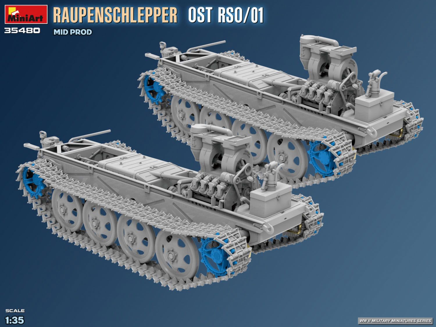 第二次大戦でドイツ軍が開発、運用した装軌式トラクター、RSO/01を再現したプラスチックモデル組み立てキットです。中でも中期生産型をモデル化。ミニアートならではのエンジンまで再現されたフルディテール。メカニズムも理解できる作りごたえあるキットです。