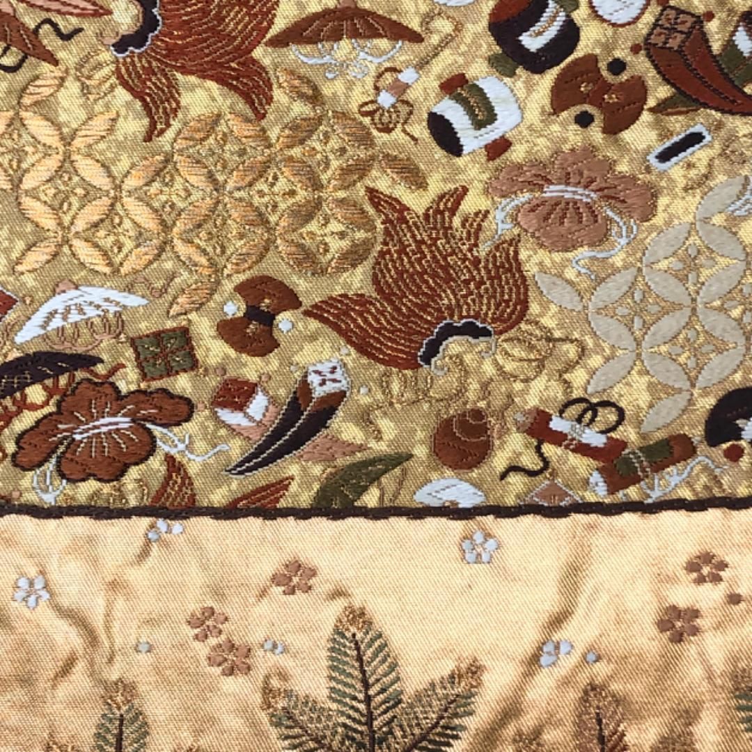 袋帯 西陣 河合美術織物 豊明錦 宝尽くし 松竹梅 金糸 金色 O-5656