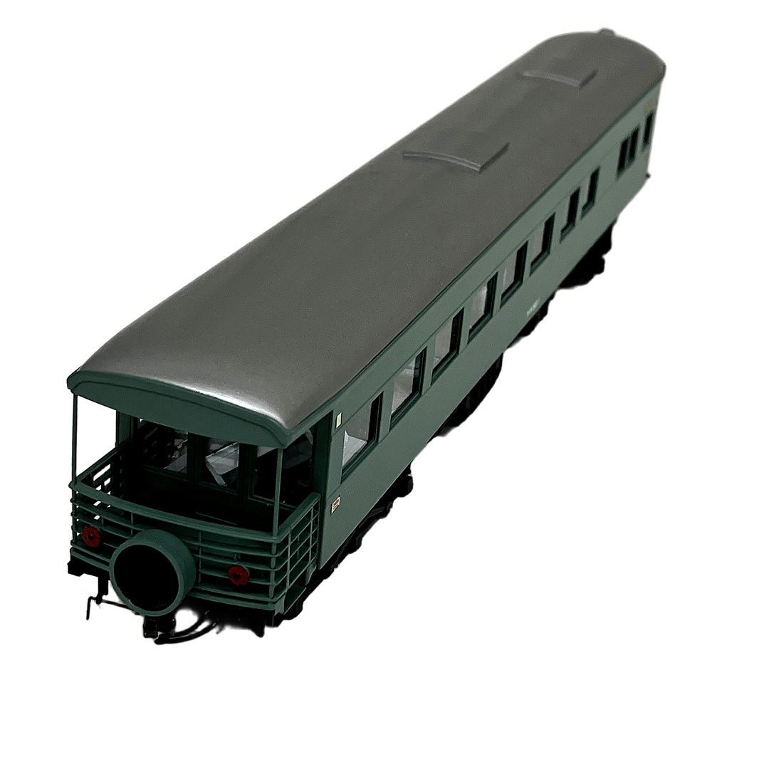 天賞堂製HOゲージ、マイテ58 青大将です。東海道本線全線電化を機に、特急「はと」編成として活躍した展望車の勇姿を忠実に再現したモデルです。手すりやテールマークが表現されたデッキ部、3軸のTR73台車、クーラー等の床下機器まで的確に再現されています。特徴的な淡緑色の車体は、鉄道ファンならずとも魅了されることでしょう。