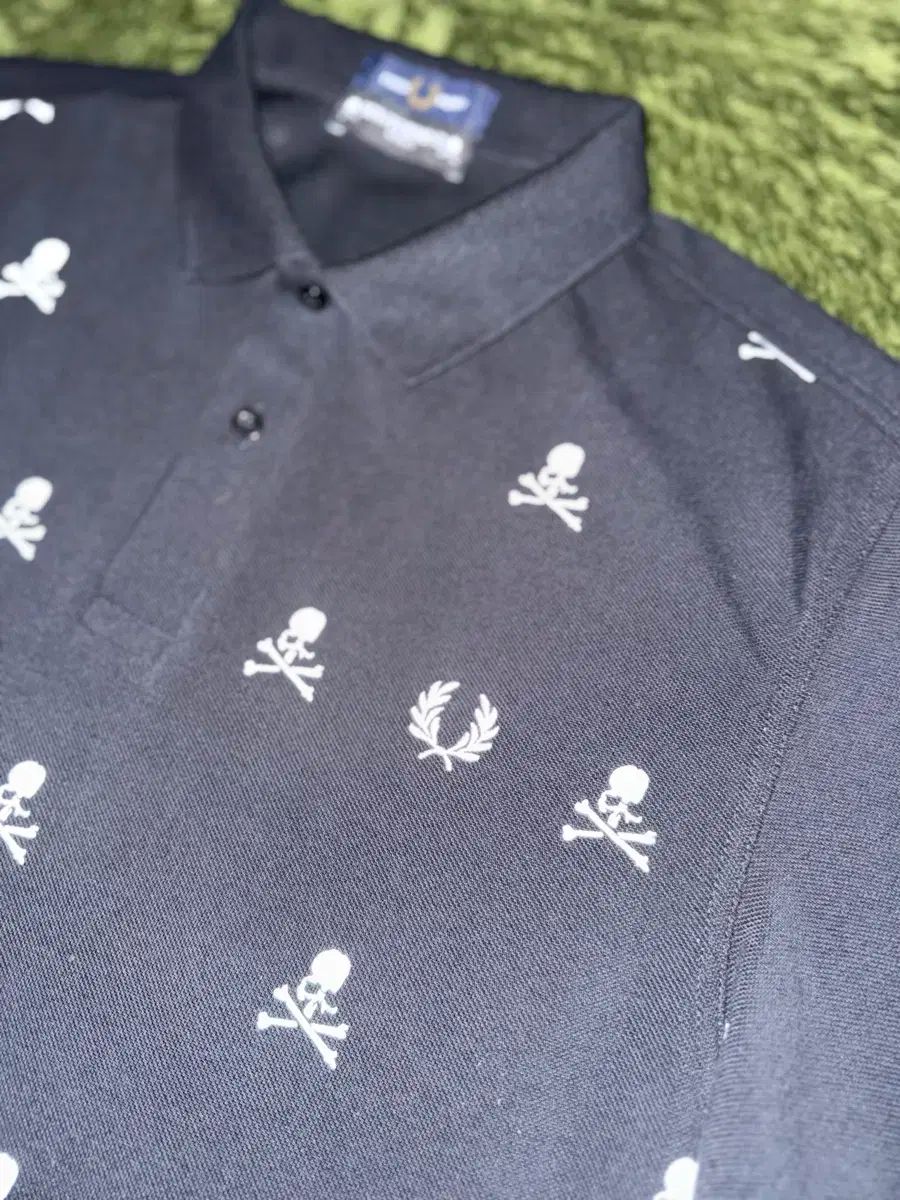 L マスターマインド X フレッドペリー スカル ロゴ プリント ポロTシャツ