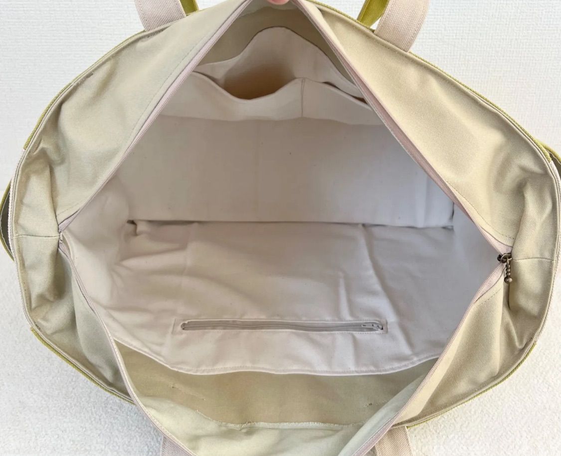 #ハンドメイド #倉敷帆布生地を使用 #akaneko #11号帆布 # 8号帆布 #紺 #肩掛けトートバッグ #サイドポケット付き #大きめバッグ #ヒワグリーン #XL #抹茶色 #A3