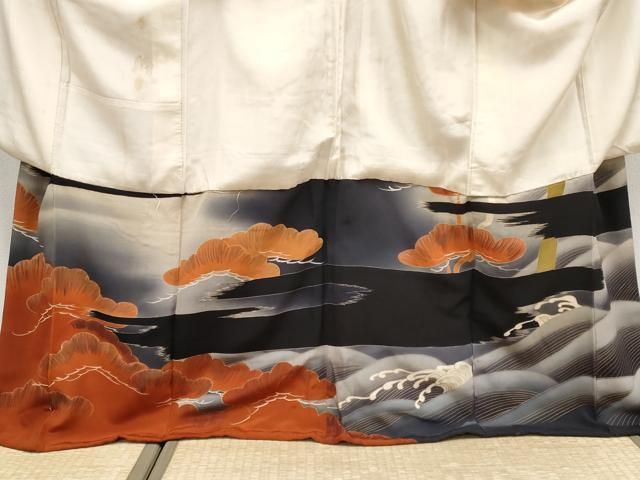 上 アンティーク 大正ロマン 中国三大刺繍 相良刺繍 振袖 渡橋飛鶴文 暈し染め 金彩 s 5