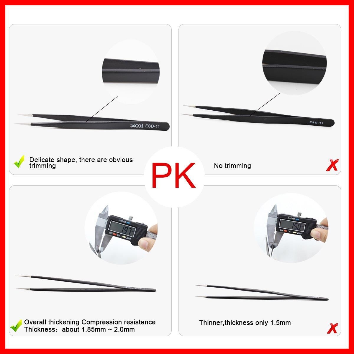 (9in1) - ESD Tweezers Tools Kit Precision Anti-static Set of Tweezers Non-magnetic and Multi-standard Stainless Steel Tweezers with Storage Bag for Lab Electronics Jewellery and Detailed Work