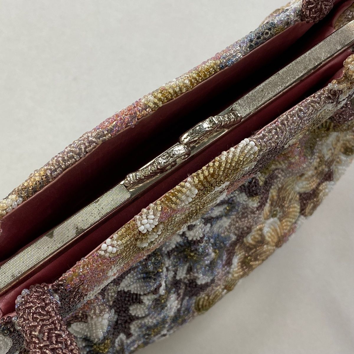 和装バッグ 優品 ビーズバッグ フォーマル 花 茶紫 ビーズ 和装小物
