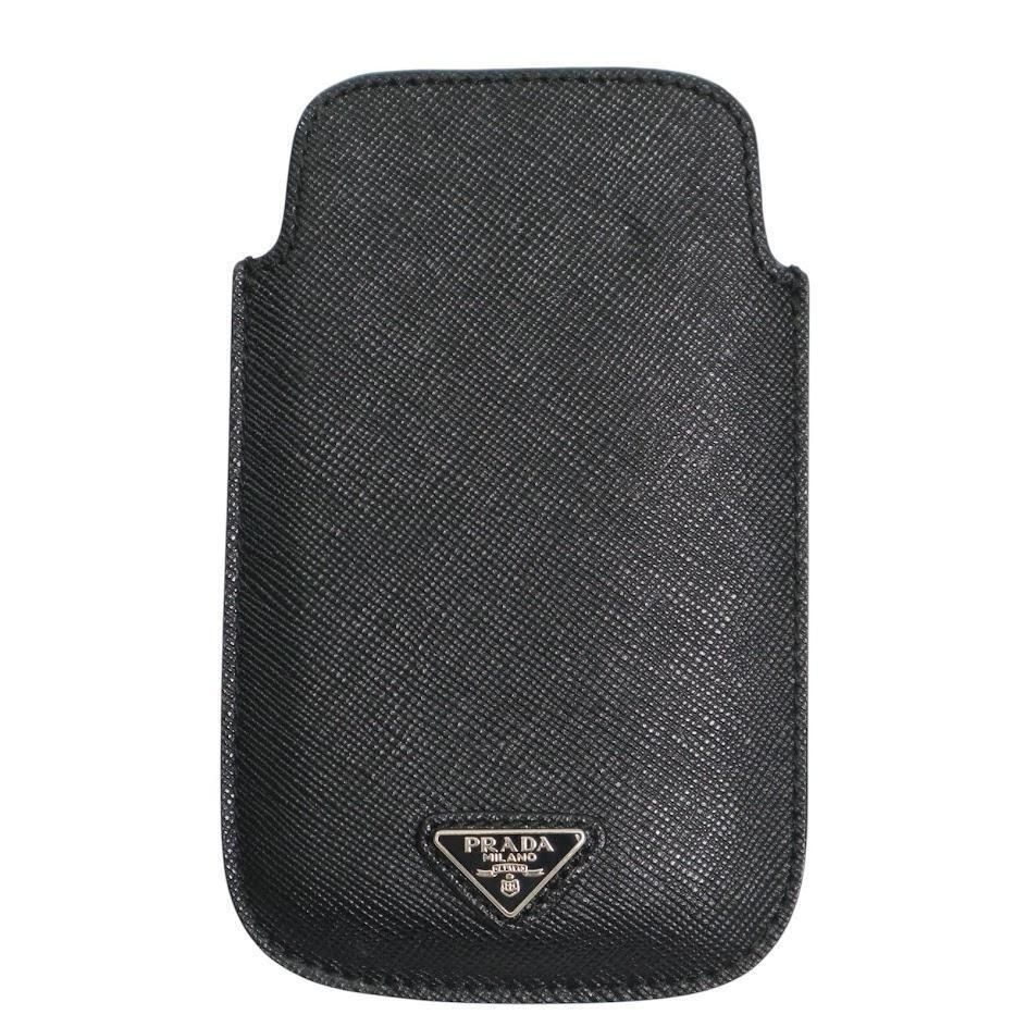 PRADA プラダ スマホケース iPhoneケース 小物入れ 三角ロゴ ロゴ型押し サフィアーノレザー 本革 ブラック メンズ レディース