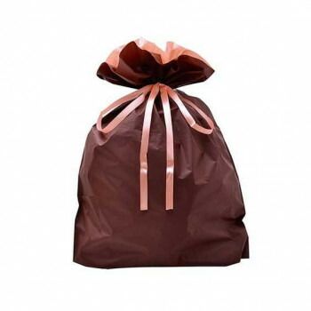 キュッとひっぱるだけでかわいい巾着ができあがります。素材・色違いの二重袋になっているのでリボンを絞るとゴージャスなラッピングが簡単にできます。外袋はマットな手触りの梨地、内袋は対象的に光沢のあるタイプになります。底マチがあるのでゆったり入ります。