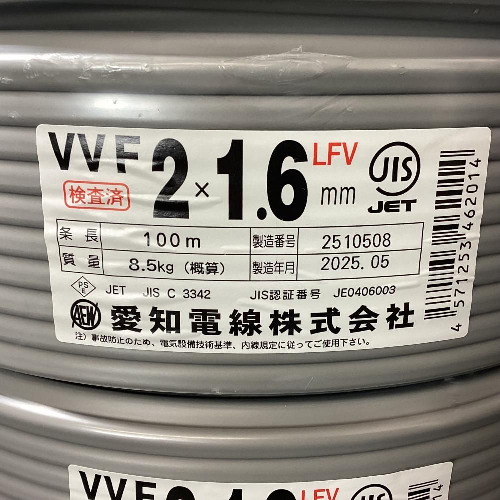 愛知電線 VVFケーブル 2 x 1 6 mm 100m 3巻セット 203
