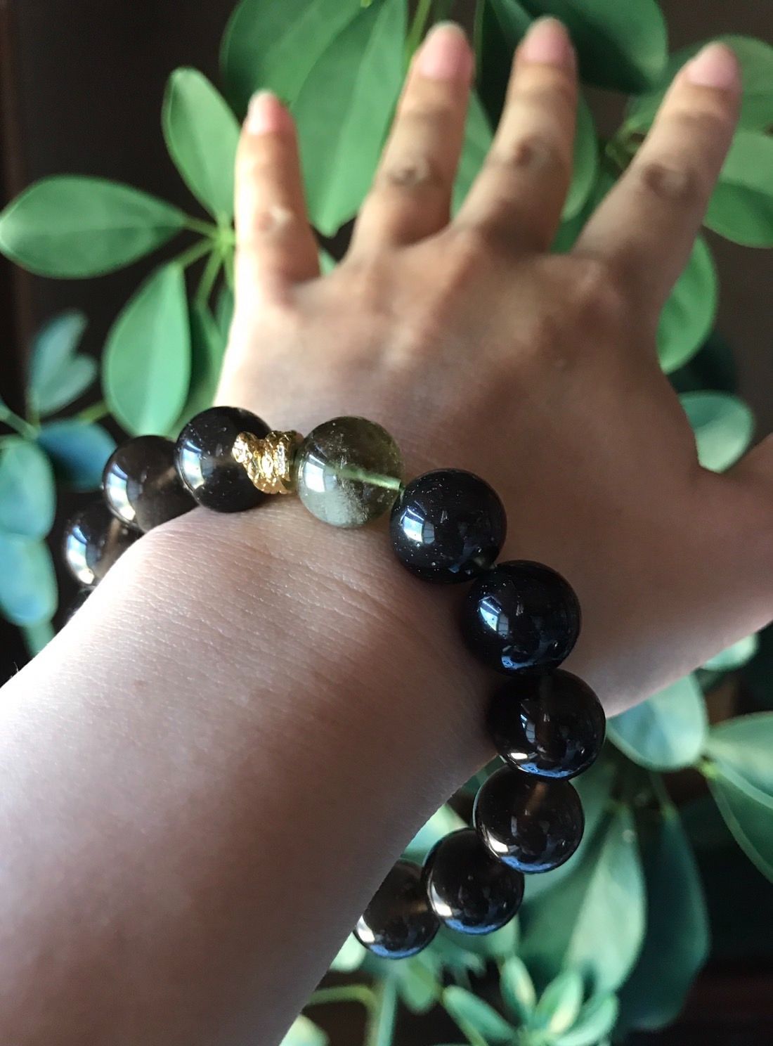 写真最後の2枚は別売りのチンターマニストーン&ブラックリビアングラスデザインブレスレット11mmとの比較です。石のグレードは同じです。