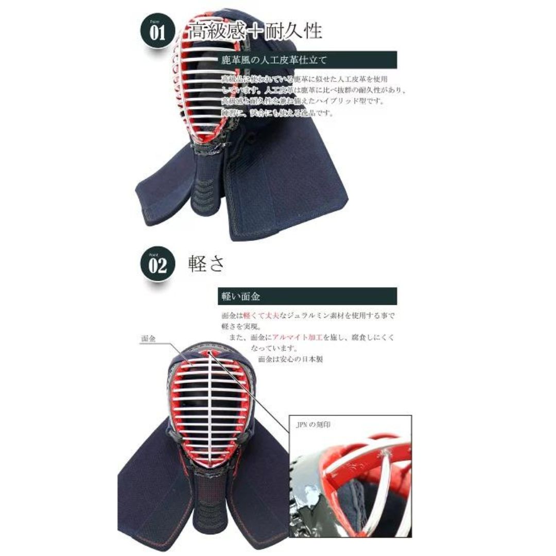 剣道 面 エンジ刺し 飛翔 5ミリミシン刺 人工皮革仕立て 刺繍ネーム無料 面乳革 面紐付き 武道園