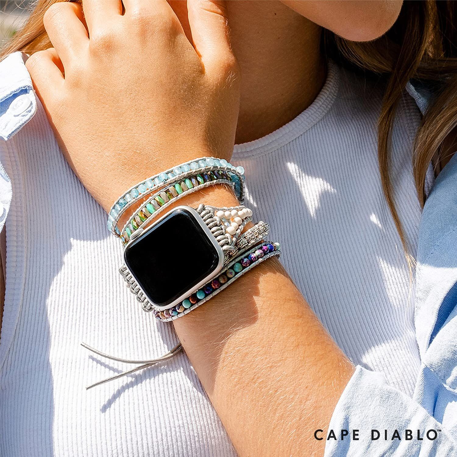 ケープディアブロ Apple watch 用 多重巻きバンド 38-45mm [ アップルウォッチ バンド 交換ベルト ブレスレット ドレッシー リストバンド 天然石 ] レディース ハンドメイド ストラップ CD23468AW オーシャンジャスパー Mサイズ (Series 1-7 / SE) 【国内正規品】