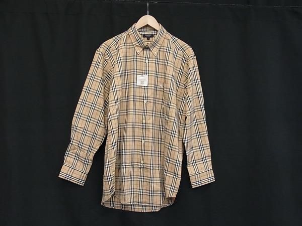 バーバリー ノバチェック コットン100% 長袖 シャツ 表記サイズL 洋服 メンズ ブラウン系 FN 6918