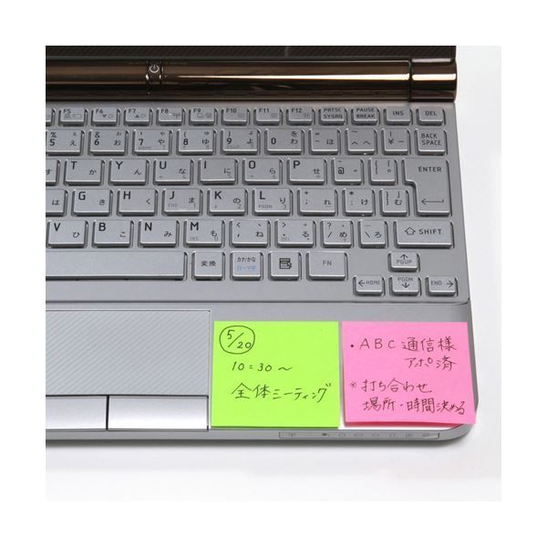 パソコンやパーティションなど、デスクまわりのつきにくい場所にも、しっかり貼れてキレイにはがせる強粘着タイプ。50×50mmノートサイズ。