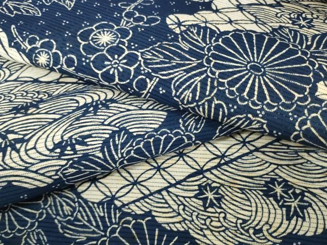 平和屋着物 夏物 浴衣 反物 着尺 綿絽 長板藍染 雲取り吉祥花文 証紙付き 綿 zzz