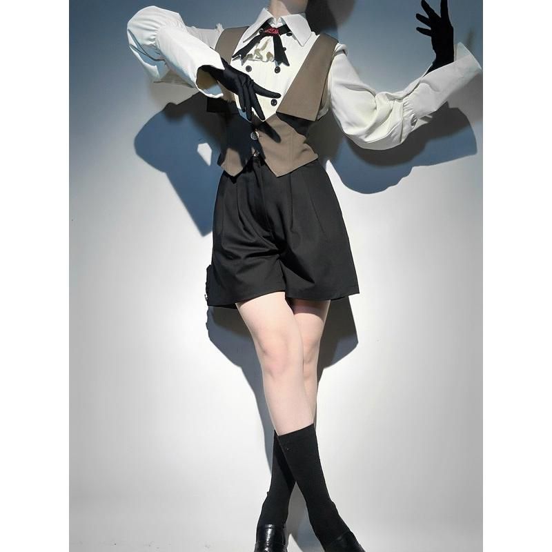 王子風ロリータ 探偵風 少年装 3点セット マント 長袖 男装 王子装 王子系 皇子系 リボン フリル ゴスロリ服 日常着 お出かけ ロリィタ ステージ