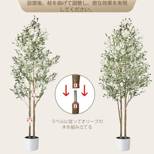 【仕様】このオリーブの木の高さは150CM、重さは3.9KGです。二つの幹があります。自然にフレッシュで本物にとても近い色に見えます。場所によって真正性を見分けがつかないほど枝葉と実が特徴で、近くで見ると細部までリアルに再現されています。環境にやさしく、日当たりのナチュラルな雰囲気を作り出しています。