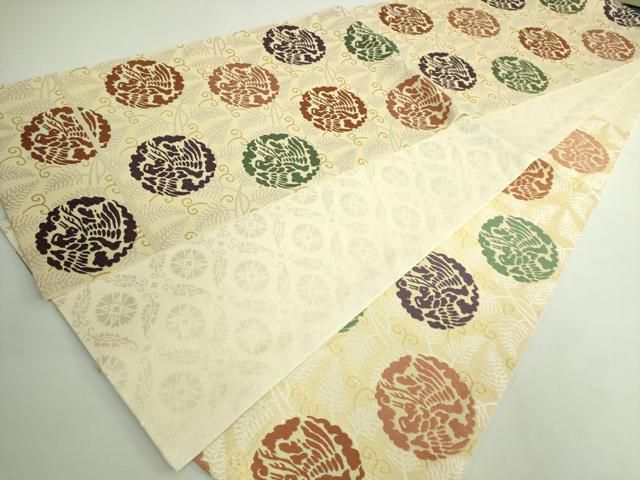 上 人間国宝 喜多川俵二 俵屋18代 有職織物 六通柄袋帯 唐織 金糸 kh 5